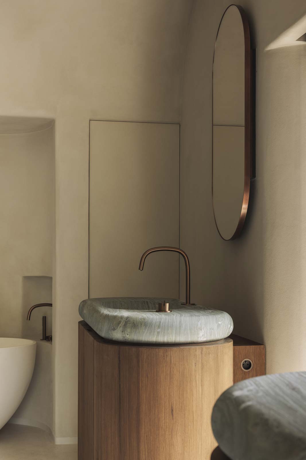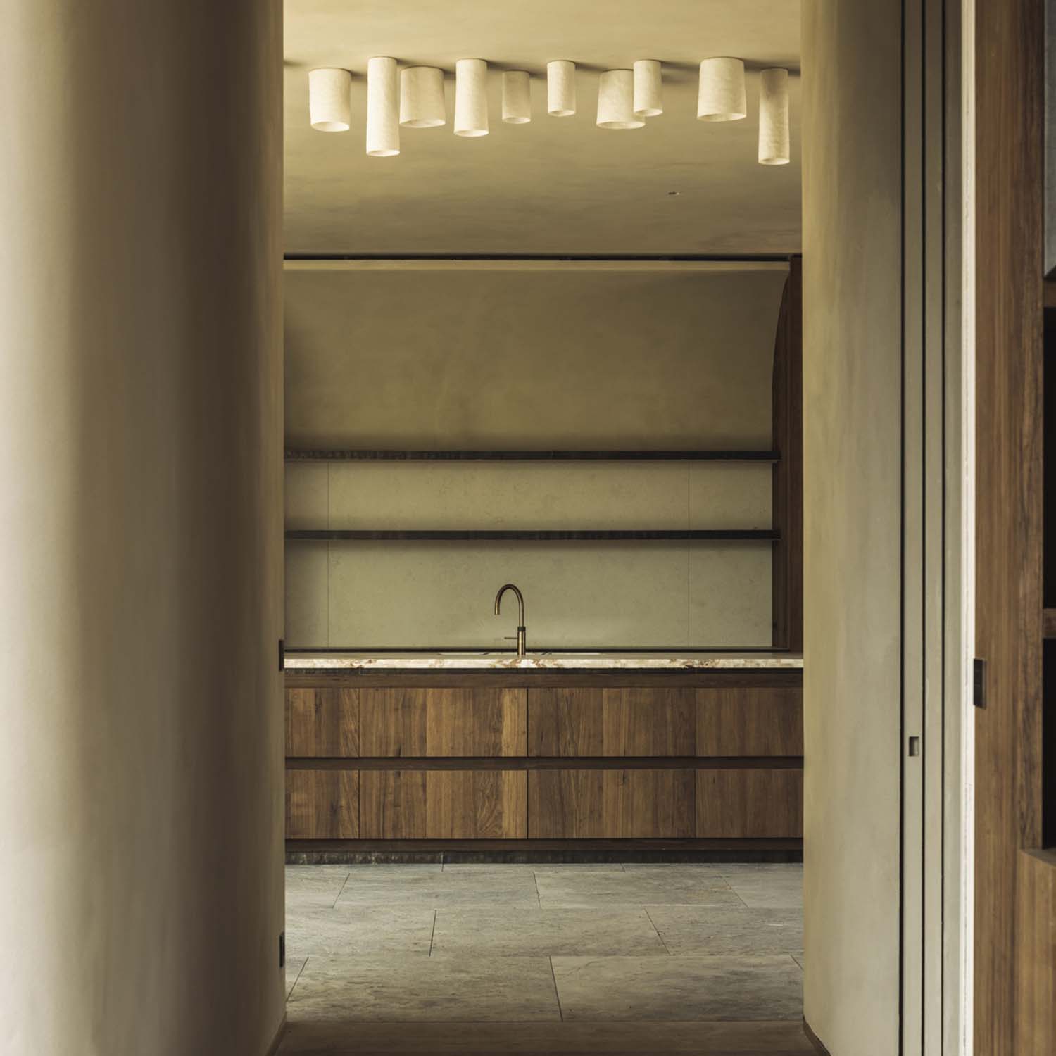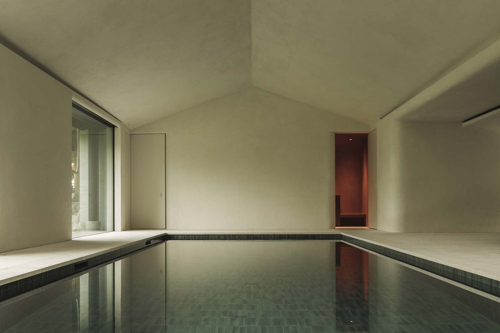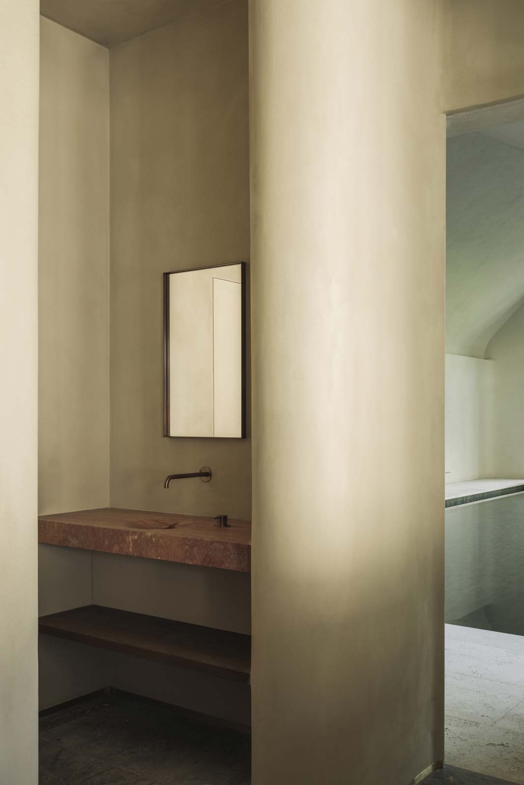 In de villa heerst een ontspannen sfeer en brengen de vloeiende lijnen en zachte vormen sereniteit in elke ruimte. Het interieur is uitgewerkt in een coherent kleurenpalet en met verfijnde details, zoals het notelaarparket.