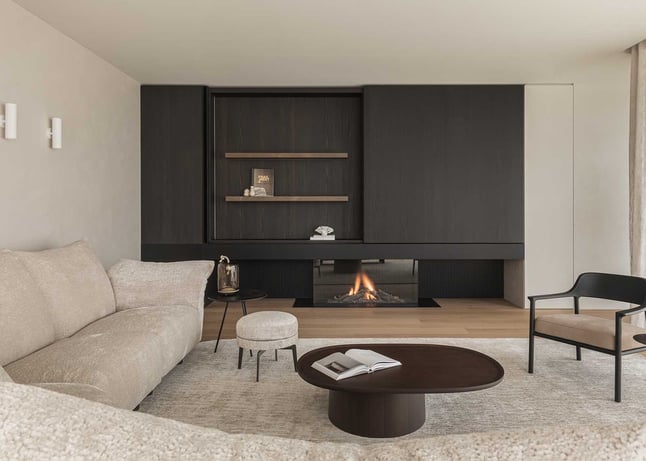 Via bouwadviseur Gauthier kwam het koppel in contact met interieurarchitecte Laura Calleeuw. “We wilden haar vroeg in het project betrekken zodat het nog mogelijk was om eventueel een aantal zaken aan te passen aan het ontwerp”, gaat de bouwdame verder. “Laura vertaalde op creatieve wijze onze wensen naar een harmonieus, warm interieur. Ze stond ons bij in de keuze van materialen en ontwierp al het maatwerkmeubilair. Gauthier hielp ons dan weer met het sanitair, de verlichting, … in samenspraak met Laura. Ze waren goed op elkaar afgestemd.”