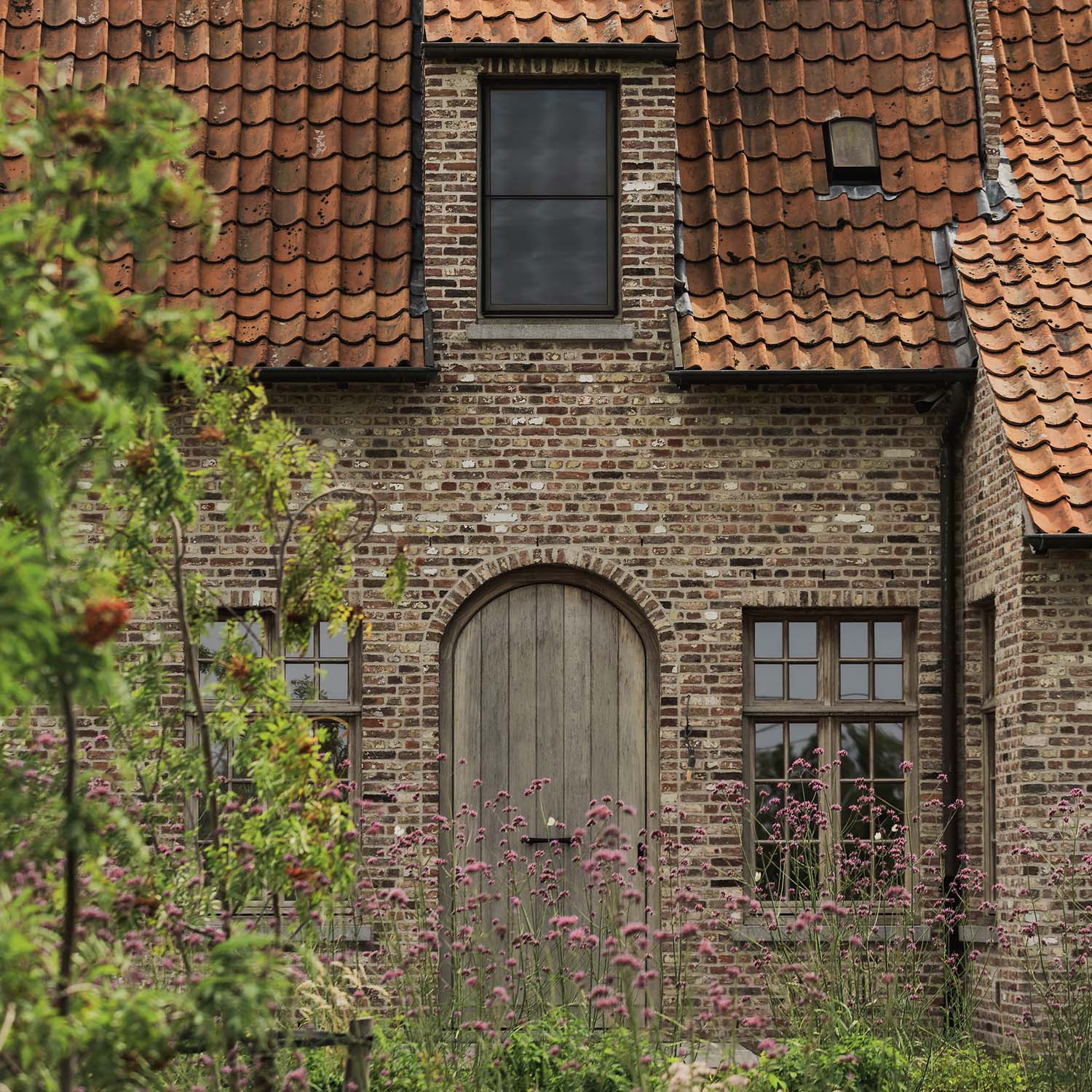 Natuurlijke charme en authenticiteit staan centraal in deze landelijke villa met ruim bijgebouw. De boogramen en ramen met roeden, beide in afrormosiahout, geven de woning een warme uitstraling en creëren vergezichten over de weidse tuin. De buitengevel combineert oude klampsteen met eiken gevelbeplanking. De oude Boomse pannen maken het plaatje compleet. Deze recuperatiematerialen bepalen het karakteristieke uiterlijk van deze nieuwbouwvilla.