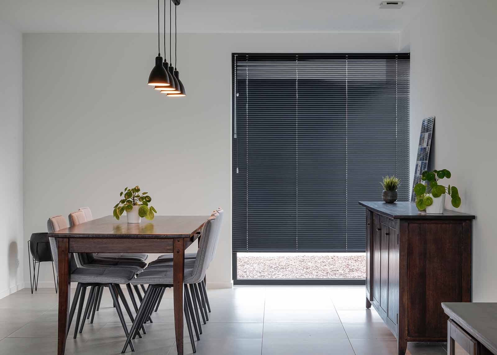 Een strakke woning met rechte lijnen, witte crepi gevel en uitgesproken zwarte accenten. Dat had het koppel V. uit Meulebeke voor ogen voor hun eigen villa. Deze sobere, hedendaagse lijn trokken ze resoluut door in de woning, waar dezelfde kleurtinten terugkomen. De lichte, keramische tegels vormen een knap contrast met de keuken. Door hun onderhoudsvriendelijk karakter verhogen ze bovendien het wooncomfort. Ook in de badkamer is gekozen voor deze vloerbekleding. In de slaapkamers liet het koppel screens installeren die de warmte in de zomermaanden buitenhouden. De villa is gelegen in een rustige wijk, niet ver van het hart van Meulebeke.